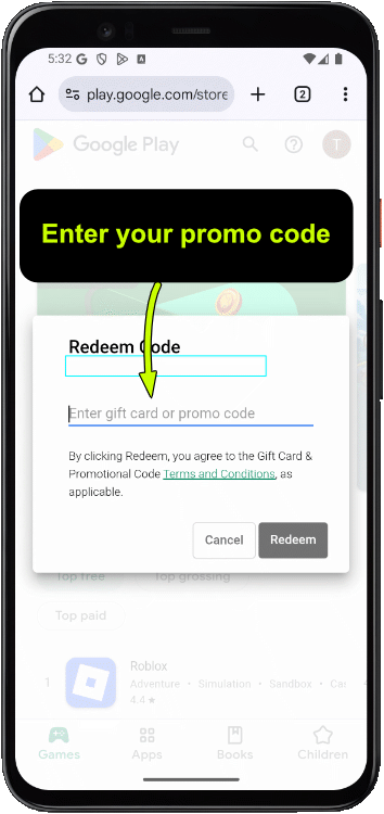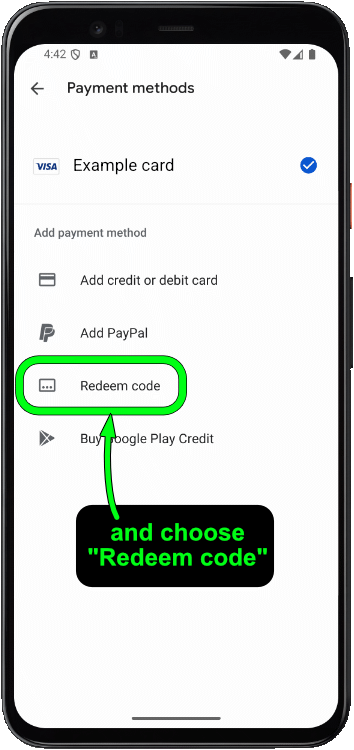 If method 1 doesn’t work, open the Play store app and tap on your account icon in the top right corner, choose “Payments & subscriptions“, then choose “Redeem code“