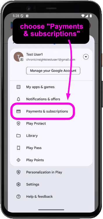 To cancel a subscription, open the main settings menu and choose “Premium”. Then tap on “Cancel subscription”. This will open the Play Store (if you’re on Android) or the App Store (if you’re on iPhone/iPad) at the subscriptions page. Tap on Chronic Insights in the list of active subscriptions, and choose “Cancel”.