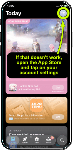 If method 1 doesn’t work, open the App Store app and tap on your account icon in the top right corner, then choose “Redeem code“, and enter your code manually